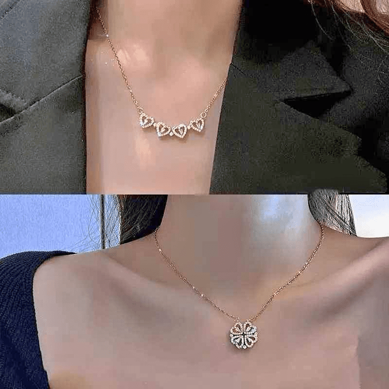 Collar Cuádruple de la Fortuna: Encanto Infinito con Corazones y Trébol