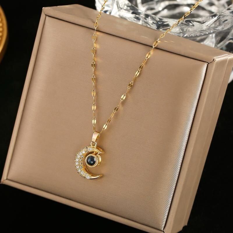 1° Diseño Exclusivo: El collar presenta una luna delicadamente diseñada con las palabras «Te Amo» grabadas en 100 idiomas diferentes, creando un aspecto único y romántico.