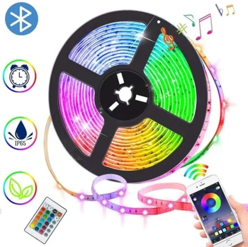 -La tira led rgb5050 SMART, es multicolor, tiene función a ritmo de música, y control de tiempo para las luces, que todo lo puede programar desde su dispositivo móvil celular.