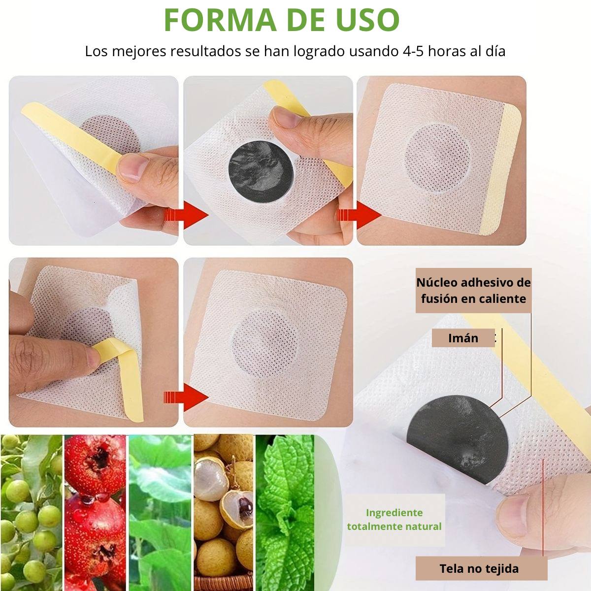 2° Fácil de Usar: Simplemente aplica un parche adelgazante sobre la piel limpia y seca, preferiblemente en el área abdominal, y déjalo actuar durante 8-12 horas. Los parches son discretos y cómodos de llevar, lo que te permite continuar con tus actividades diarias sin interrupciones.
